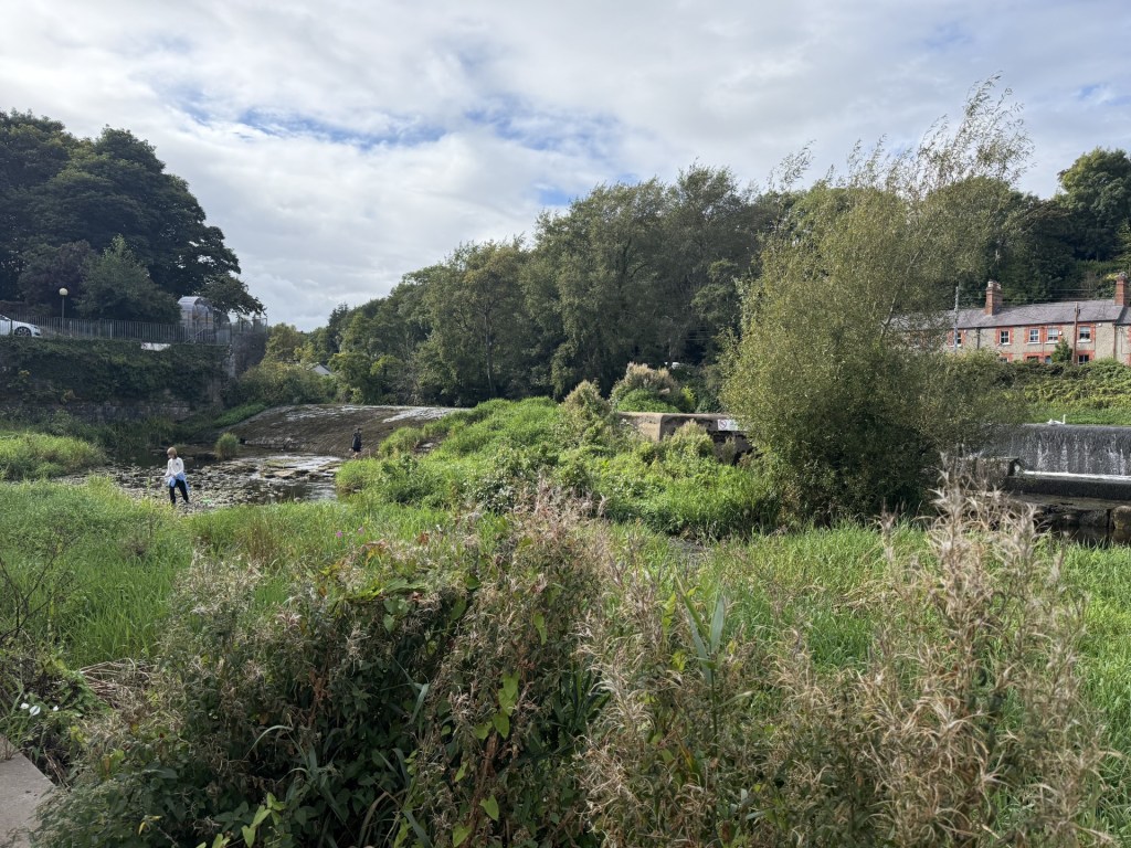 I had a chance for a good look at the works at the village green and weir at the weekend, during the wonderful Lucan Festival. Progress looks very behind schedule at this stage. The workers are laying cut limestone with a tiny amount of “wiggle room” between blocks, so this precise work takes time. However, we have to ask now if this will be finished in time for Christmas 2025?