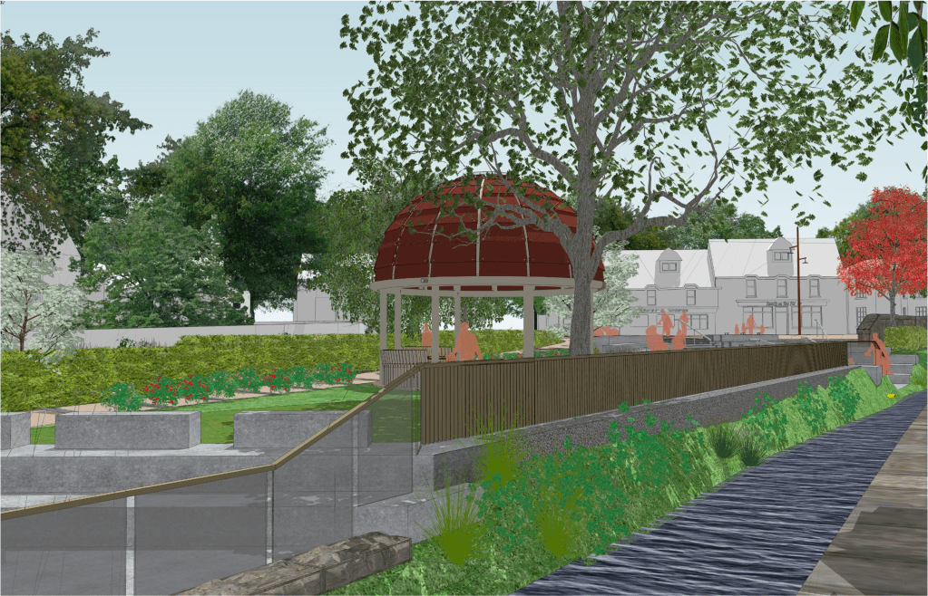 Hopefully this will give you a better idea of how things will look, once the flood alleviation works underlying parts of the main design (which will be totally hidden, once finished) are finished, and work will move to the infill design and finally, the planting. Currently, the works are due to be completed this Autumn 2025, just slightly behind schedule because of a delay to allow trout spawning.