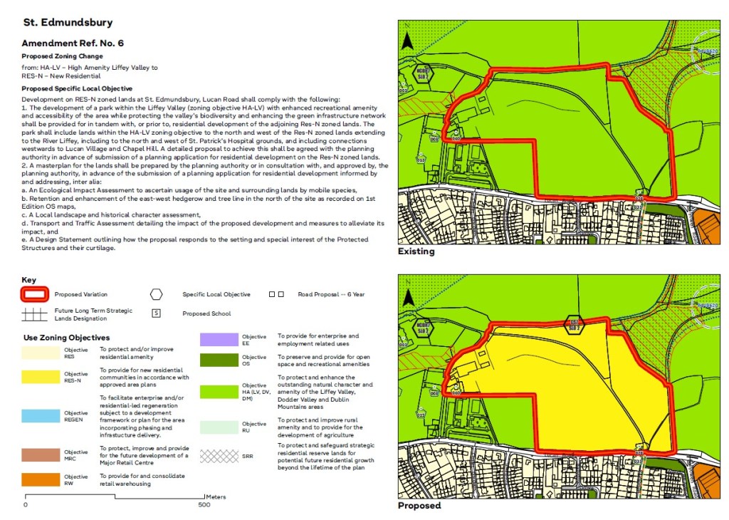 - Southern part of St. Edmundsbury – currently zoned High Amenity and adjacent to the lands that are under the SAAO of the Liffey Valley.